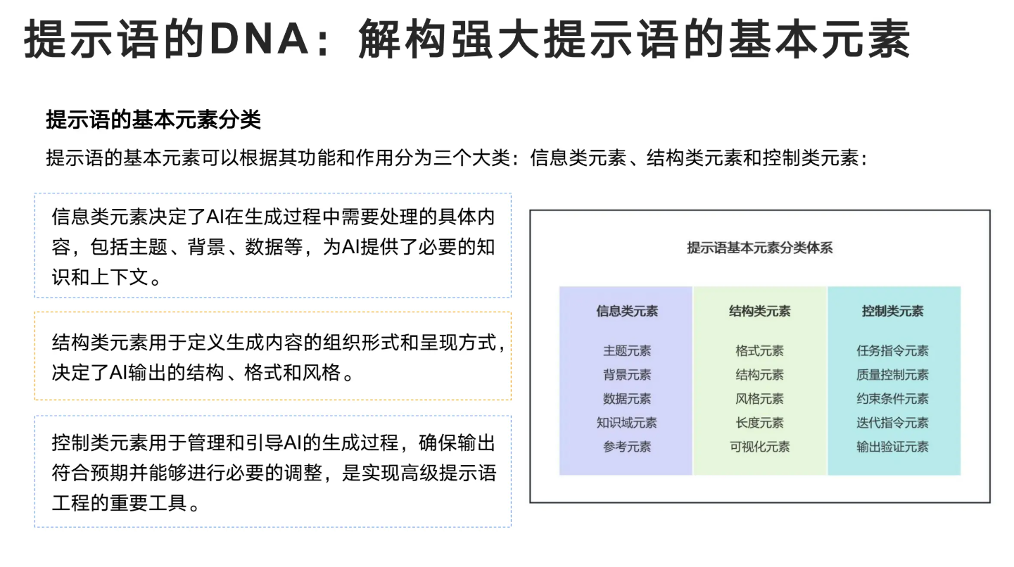 实战案例:包括文案创作、代码开发、数据分析等方面,还有 “提示语设计 DNA”“组合策略” 等内容。